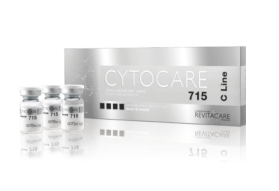Preparat Cytocare C 715 jest produktem pośrednim, pomiędzy typowym wypełniaczem a innymi preparatami używanymi do mezoterapii. Doskonałe efekty są wynikiem równoczesnego zastosowania bardzo wysokiego stężenia kwasu hialuronowego z dipeptydem karnozyną ( określanej jako antyoksydant XXI wieku) oraz kompleksu aminokwasów. W preparacie: