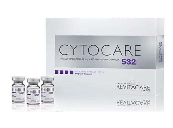 Ekskluzywny koktajl do mezoterapii francuskiego Laboratorium RevitaCare® dające efekty odmłodzenia i wygładzenia skóry. Wyjątkowa skuteczność tkwi w składzie, oprócz zawartości kwasu hialuronowego w skład CytoCare® wchodzi 55 aktywnych składników w tym witaminy, sole nieorganiczne i aminokwasy. Dzięki CytoCare® biologiczny kapitał skóry jest zachowany, a efekty starzenia zatrzymane. Intensywne nawodnienie i regeneracja skóry, jej widocznie lepsza kondycja, to tylko niektóre korzyści wynikające z zastosowania CytoCare®. Synergiczne działanie witamin, aminokwasów i minerałów z kwasem hialuronowym przyspiesza regenerację komórkową.