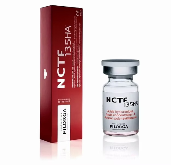 Filorga NCTF 135 HA to produkt do mezoterapii przeciw starzeniu się skóry, mającej na celu biorewitalizację i nawilżenie zmęczonej, matowej skóry oraz wygładzenie powierzchownych zmarszczek. Znakomicie opracowany skład chemiczny zapewnia wysoka jakość zabiegów i uzyskanie pożądanych efektów u pacjenta. Kwas hialuronowy 5mg/ml – Posiada właściwości higroskopijne, ma zdolność pochłaniania dużych ilości wody, zwiększa proliferację komórkową i przyczynia się do powstawania nowych naczyń krwionośnych. Odpowiada za utrzymanie prawidłowej równowagi wiskoelastycznej skóry i naskórka. Witamina A przyspiesza odnowę komórkową przez regulację procesów keratynizacji i gojenia. Witamina B wpływa na metabolizm niezbędnych nienasyconych kwasów tłuszczowych zapewniających skórze równowagę biologiczną. Witamina C zwiększa syntezę kolagenu i elastyny w fibroblastach.
