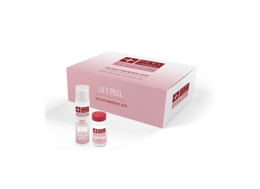 Pierwszy etap składa się z zabiegu w gabinecie kosmetycznym. Jego istotnym elementem jest aplikacja ampułki LIFT PEEL STEP 1, z 10% czystym kwasem glicyryzynowym, poprawiającym sprężystość, napięcie i gładkość cery. Zwieńczeniem sesji jest nałożenie LIFT SERUM STEP 2, które Klientka otrzymuje w celu kontynuacji pielęgnacji w domu.